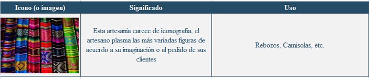 Las manifestaciones artesanales incluyen textiles, cerámicas y objetos de origen natural como cortezas de árboles y maderas trabajadas.